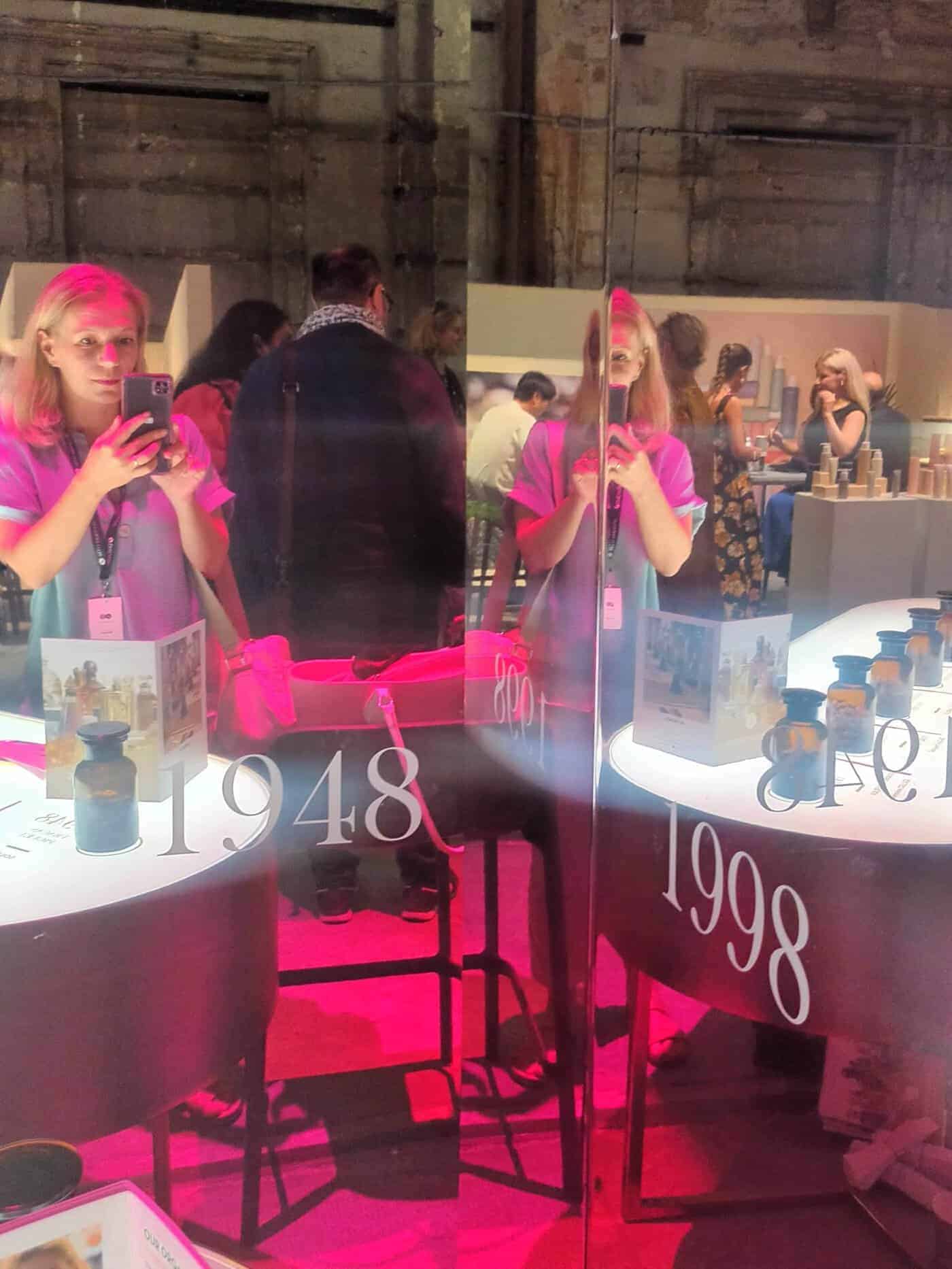 On top of the high, bright glass centre pillar, L’Osmothèque’s name out-tops the stands while mirroring everything in its surroundings. What a symbolism!